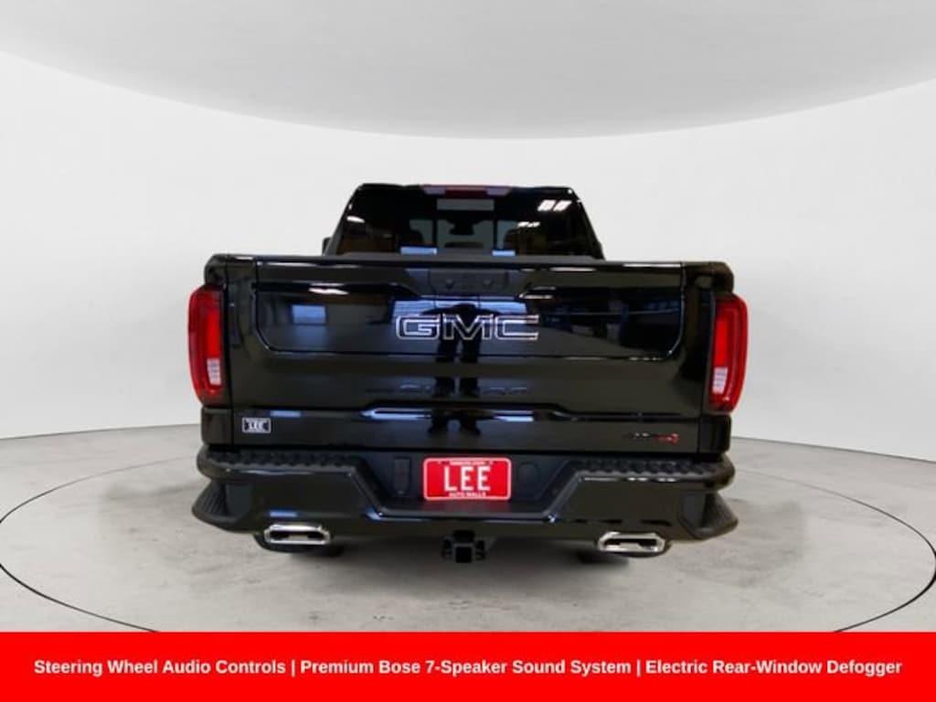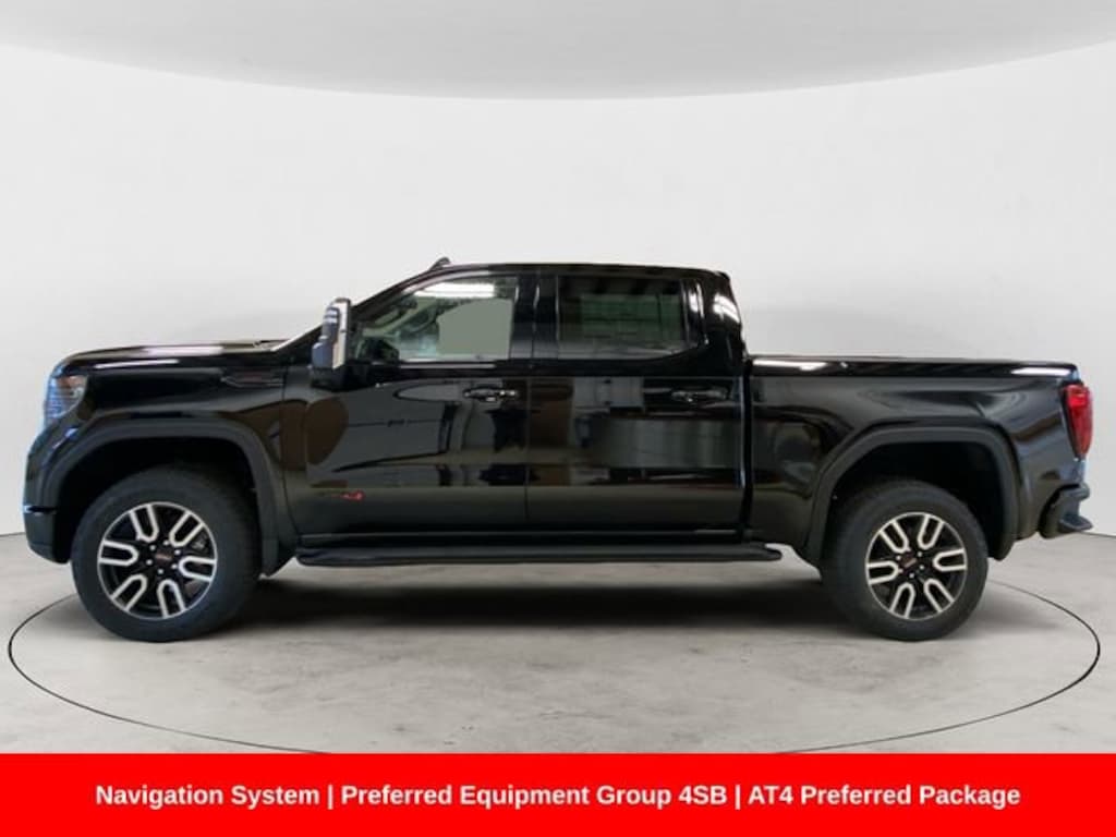 120-Volt Bed Mounted Power Outlet, 120-Volt Interior Power Outlet, 2 Charge/Data USB Ports Inside Center Console, 2 Type-C Charge-Only Rear USB Ports, 2 USB Ports, 220 Amp Alternator, AT4 Preferred Package, Auto-Locking Rear Differential, Black Badging Package (LPO), Black Chrome Grille Insert Bars, Black GMC Emblems (LPO), Black Sierra Nameplates (LPO), Color-Keyed Carpeting Floor Covering, Deep-Tinted Glass, Electric Rear-Window Defogger, Floor-Mounted Center Console, Front Prem Floor Liners w/Removable Carpet Insert, Front Rain-Sensing Wipers, HD Surround Vision, Heated 2nd Row Outboard Seats, Heated Driver & Front Outboard Passenger Seating, Heated steering wheel, Heavy-Duty Air Filter, Hill Descent Control, Hitch Guidance, Hitch View, In-Vehicle Trailering System App, Integrated Trailer Brake Controller, Keyless Open & Start, LED Cargo Area Lighting, Memory seat, Navigation System, OnStar Services Capable, Perimeter Lighting, Power Door Locks, Power driver seat, Power Front Passenger Windows w/Express Up/Down, Power Front Windows w/Driver Express Up/Down, Power passenger seat, Power Rake & Telescoping Steering Column, Power Rear Windows w/Express Down, Power Sliding Rear Window w/Rear Defogger, Power Sunroof, Preferred Equipment Group 4SB, Premium Bose 7-Speaker Sound System, Push Button Start, Rear Cross Traffic Braking, Rear Pedestrian Detection, Rear Prem Floor Liners w/Removable Carpet Insert, Rear Wheelhouse Liners, Red Recovery Hooks, Remote Vehicle Starter System, SiriusXM w/360L Trial Subscription, Spray-On Pickup Bedliner w/GMC Logo, Steering Wheel Audio Controls, Theft Deterrent System (Unauthorized Entry), Trailer Camera Provisions, Trailer Side Blind Zone Alert, Trailering Package, Ultrasonic Front & Rear Park Assist, Universal Home Remote, Ventilated Driver & Front Passenger Seats, Wi-Fi Hotspot Capable, Wireless Charging.
