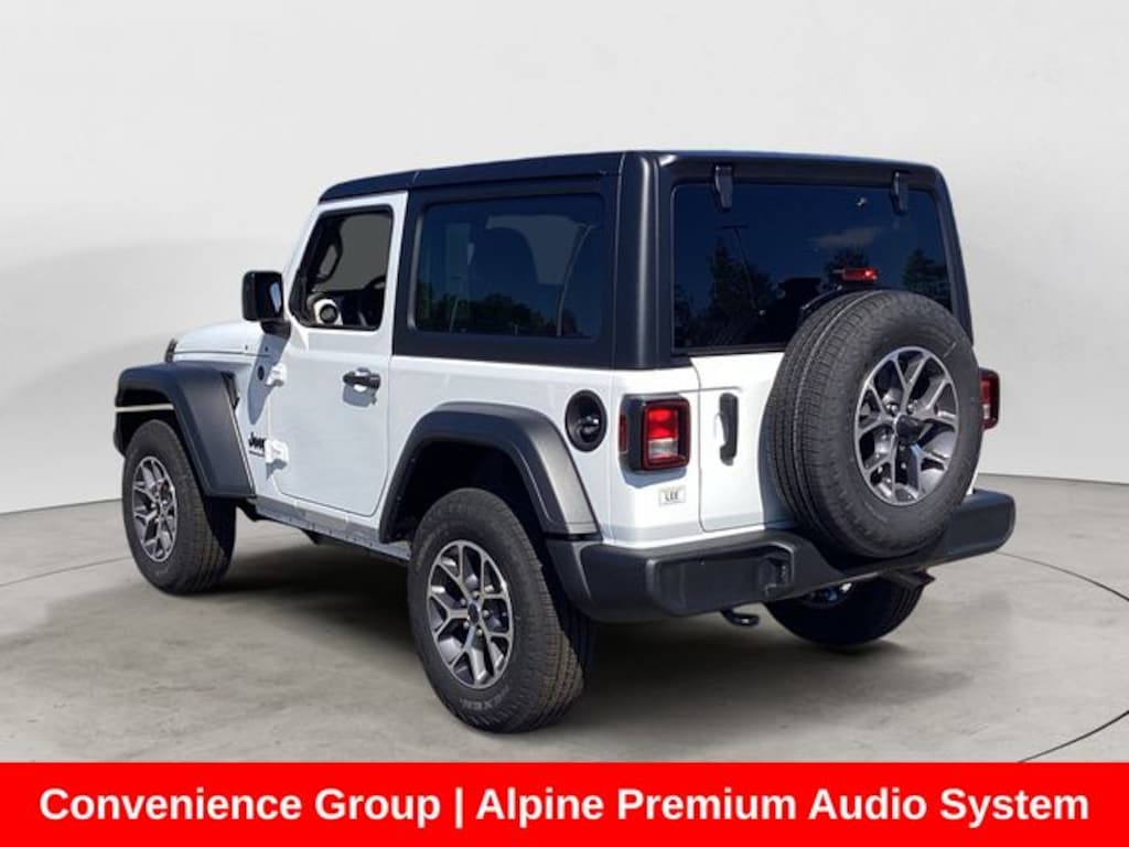 Bright White Clearcoat 2025 Jeep Wrangler Sport S 4WD 8-Speed Automatic 2.0L I4 DOHC 2-Door Passive Entry, Front Door Locks, Advanced Brake Assist, Air Conditioning w/Auto Temperature Control, Air Filtering, Alpine Premium Audio System, Apple CarPlay/Android Auto, Automatic Headlamps, Black 3-Piece Hard Top, Cluster 7.0" TFT Color Display, Convenience Group, Corning Gorilla Glass, Deep Tint Sunscreen Windows, Emergency/Assistance Call, Enhanced Adaptive Cruise Control, Freedom Panel Storage Bag, Front Bucket Seats, Front fog lights, Front LED Fog Lamps, Full Speed Forward Collision Warning Plus, Heated Front Seats, Heated Steering Wheel, LED Headlamp & Fog Lamp Group, LED Premium Reflector Headlamps, ParkView Rear Back-Up Camera, Power Heated Mirrors, Premium Wrapped Steering Wheel, Quick Order Package 22S Sport S, Radio: Uconnect 5 w/12.3" Display, Rear Window Defroster, Rear Window Wiper/Washer, Remote Start System, Security Alarm, Steering wheel mounted audio controls, Sun Visors w/Illuminated Vanity Mirrors, Telescoping steering wheel, Universal Garage Door Opener, Wheels: 17" x 7.5" Gray.