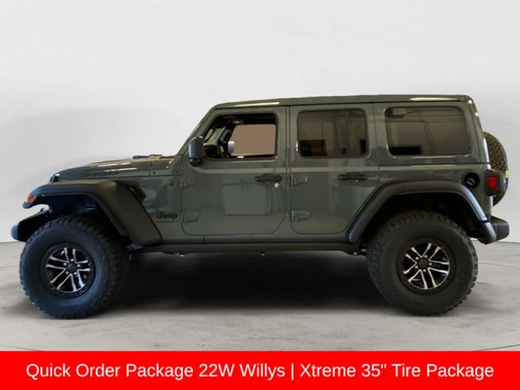 2-Door Passive Entry, Front Door Locks, 35" Tire Suspension, 4-Wheel Drive Swing Gate Decal, 4.56 Rear Axle Ratio, 7 & 4 Pin Wiring Harness, 97 MPH Vehicle Max Speed Calibration, Advanced Brake Assist, Air Conditioning w/Auto Temperature Control, Air Filtering, Anti-Lock 4-Wheel Disc Perf Brakes, Automatic Headlamps, Auxiliary Switches, Black Grille, Class II Receiver Hitch, Cluster 7.0" TFT Color Display, Convenience Group, Conventional Differential Front Axle, Corning Gorilla Glass, Dana M210 Wide HD Tube Front Axle, Dana M220 Wide Rear Axle, Daytime Running Lamps LED Accents, Deep Tint Sunscreen Windows, E-Locker Rear Axle, Emergency/Assistance Call, Enhanced Adaptive Cruise Control, Front LED Fog Lamps, Full Speed Forward Collision Warning Plus, Heated Front Seats, Heated Steering Wheel, Injection Molded Black Rear Bumper, LED Premium Reflector Headlamps, Mold In Color Bumper w/Gloss Black, Molded in Color Rubicon Highline Flare, MOPAR All-Weather Floor Mats, MOPAR Hinge-Gate Reinforcement, Off-Road Plus Mode, Power Heated Mirrors, Premium Wrapped Steering Wheel, Quick Order Package 22W Willys, Remote Start System, Security Alarm, Sun Visors w/Illuminated Vanity Mirrors, Universal Garage Door Opener, Wheel Flare Extensions, Wheels: 17" x 7.5" Painted Black, Wheels: 17" x 8" Machined w/Black Pockets, Willy's Suspension, Willys Hood Decal, Xtreme 35" Tire Package.