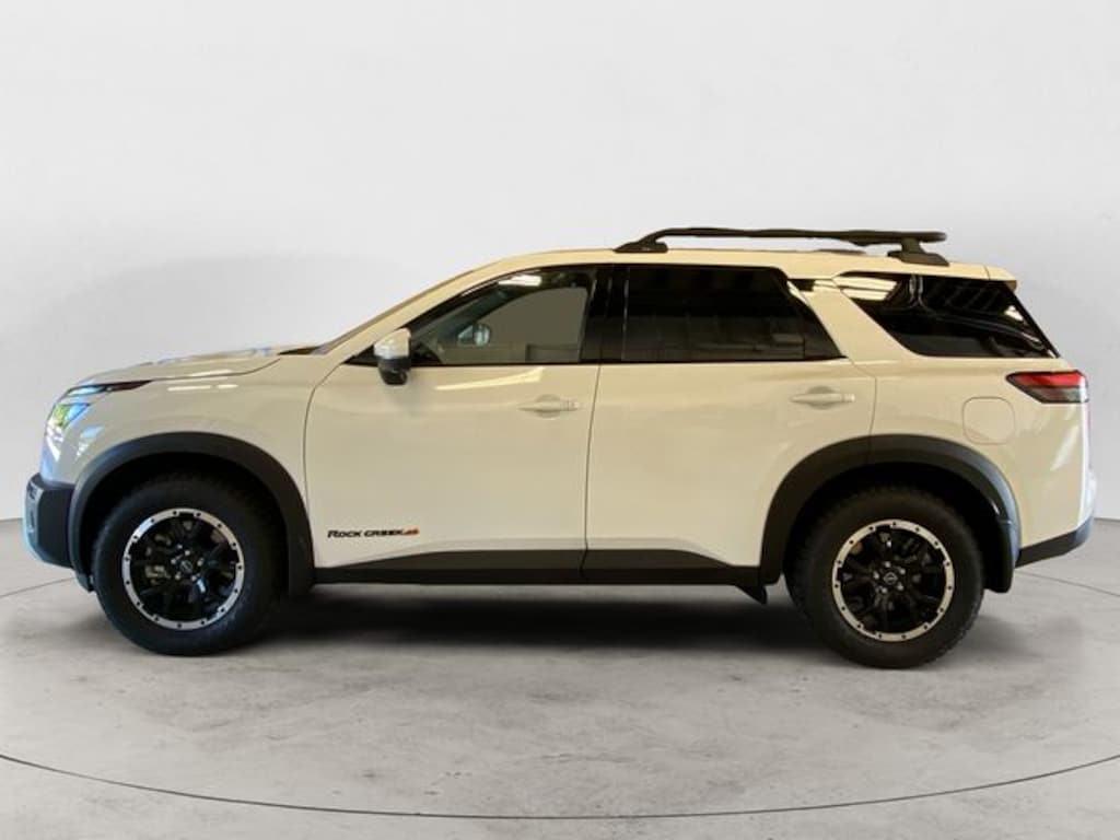New Price! Recent Arrival! Glacier White 2025 Nissan Pathfinder Rock Creek 3.5L V6 DOHC 9-Speed Automatic 4WD